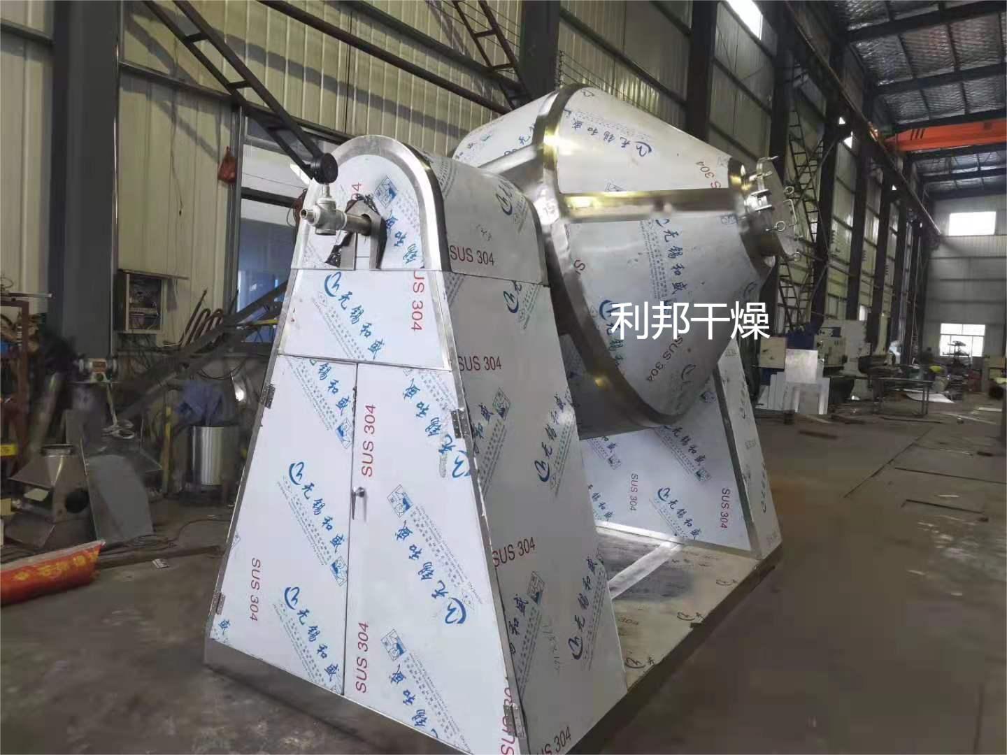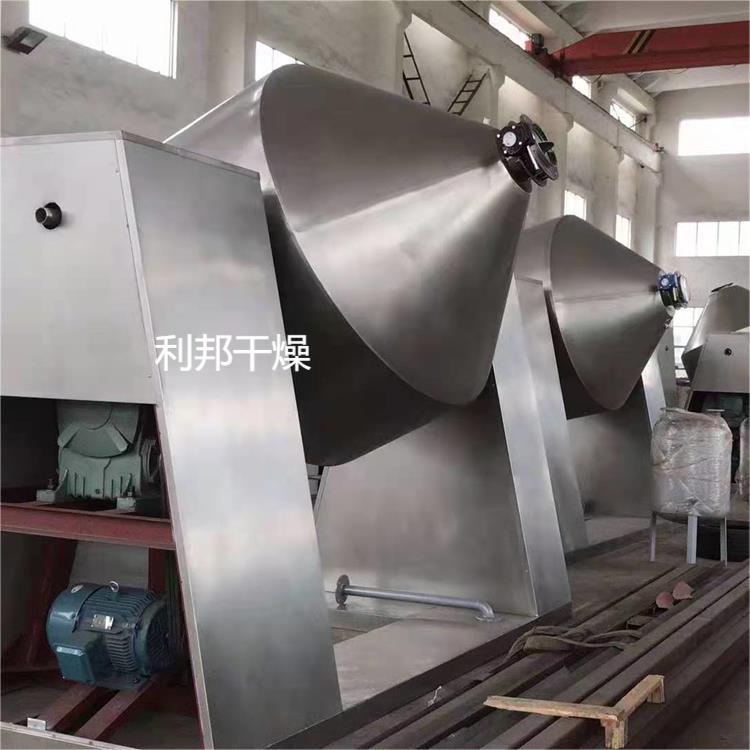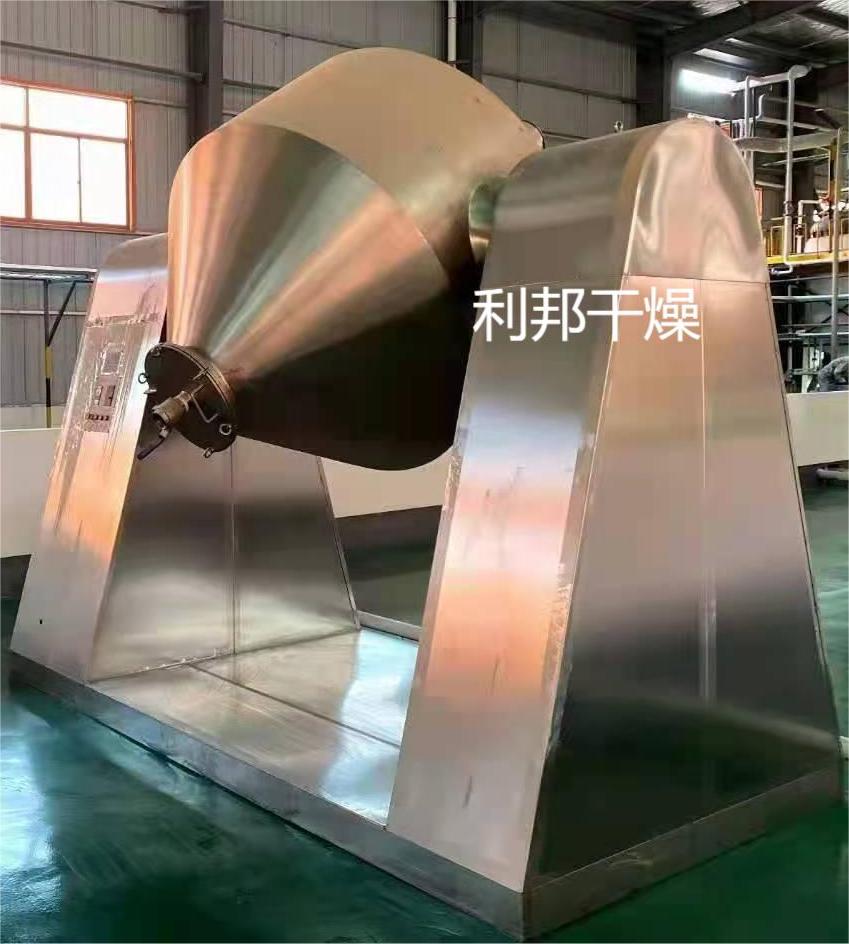雙錐回轉(zhuǎn)真空干燥機為雙錐形的回轉(zhuǎn)罐體,罐內(nèi)在真空狀態(tài)下,向夾套內(nèi)通入蒸汽或熱水進(jìn)行加熱,熱量通過罐體內(nèi)壁與濕物料接觸,濕物料吸熱后蒸發(fā)的水汽,通過真空泵經(jīng)真空排氣管被抽走。由于罐體內(nèi)處于真空狀態(tài),且罐體的回轉(zhuǎn)使物料不斷的上下內(nèi)外翻動,故加快了物料的干燥速度,提高干燥效率,達(dá)到均勻干燥的目的。雙錐回轉(zhuǎn)真空干燥機系統(tǒng)主要由雙錐回轉(zhuǎn)真空干燥機、冷凝器、除塵器、真空抽氣系統(tǒng)、加熱系統(tǒng)、冷卻系統(tǒng)、電控系統(tǒng)等組成。