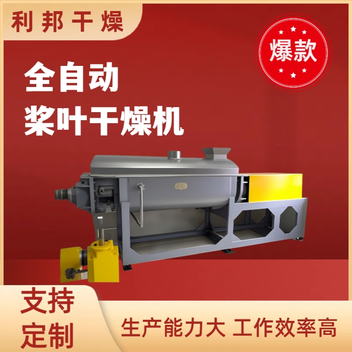 空心軸上密集排列著楔型中空漿葉,熱介質(zhì)經(jīng)空心軸流經(jīng)漿葉。單位有效容積內(nèi)傳熱面積很大,熱介質(zhì)溫度從-40℃到320℃,可以是水蒸汽,也可以是液體型:如熱水、導(dǎo)熱油等。間接傳導(dǎo)加熱,沒有攜帶空氣帶走熱量,熱量均用來加熱物料。熱量損失僅為通過器體保溫層向環(huán)境的散熱。楔型漿葉傳熱面具有自清潔功能。物料顆粒與楔型面的相對運動產(chǎn)生洗刷作用,能夠洗刷掉楔型面上附著物料,使運轉(zhuǎn)中一直保持著清潔的傳熱面。漿葉干燥機的殼體為Ω型,殼體內(nèi)一般安排二到四根空心攪拌軸。殼體有密封端蓋與上蓋,防止物料粉塵外泄而充分發(fā)揮作用。
