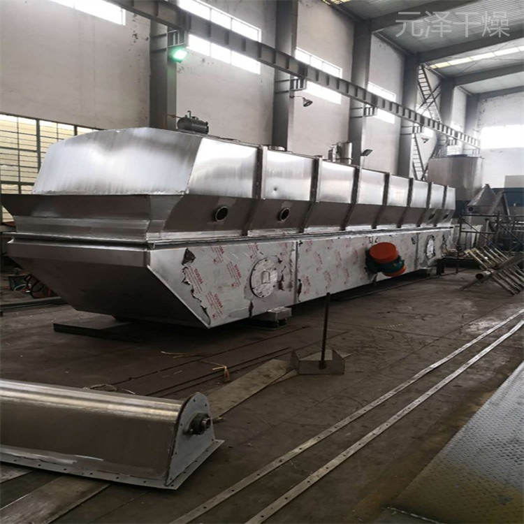 目前應(yīng)用較廣的臥式振動(dòng)流化床干燥機(jī),形狀和基本結(jié)構(gòu)與普通臥式流化床干燥機(jī)很相似。區(qū)別在于振動(dòng)流化床整個(gè)機(jī)體通過彈簧支撐在底座上,多孔板稍向出料端傾斜,機(jī)體一側(cè)或兩側(cè)裝有振動(dòng)電機(jī)。物料依靠機(jī)械振動(dòng)和穿孔氣流雙重作用流化,并在振動(dòng)作用下向前運(yùn)動(dòng)。